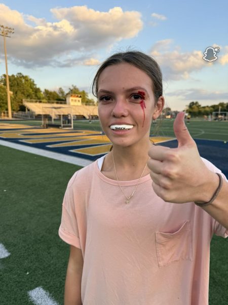 “Since joining the Clarkston Field Hockey team, I’ve had a couple injuries,” freshman Juliet Hardin states. “The first one was I got hit in the head with a ball…my third one I got a stick to the face after my friend was hitting, and I was standing behind her. That one was the most serious one; it split my head open [a cut above her left eye].”